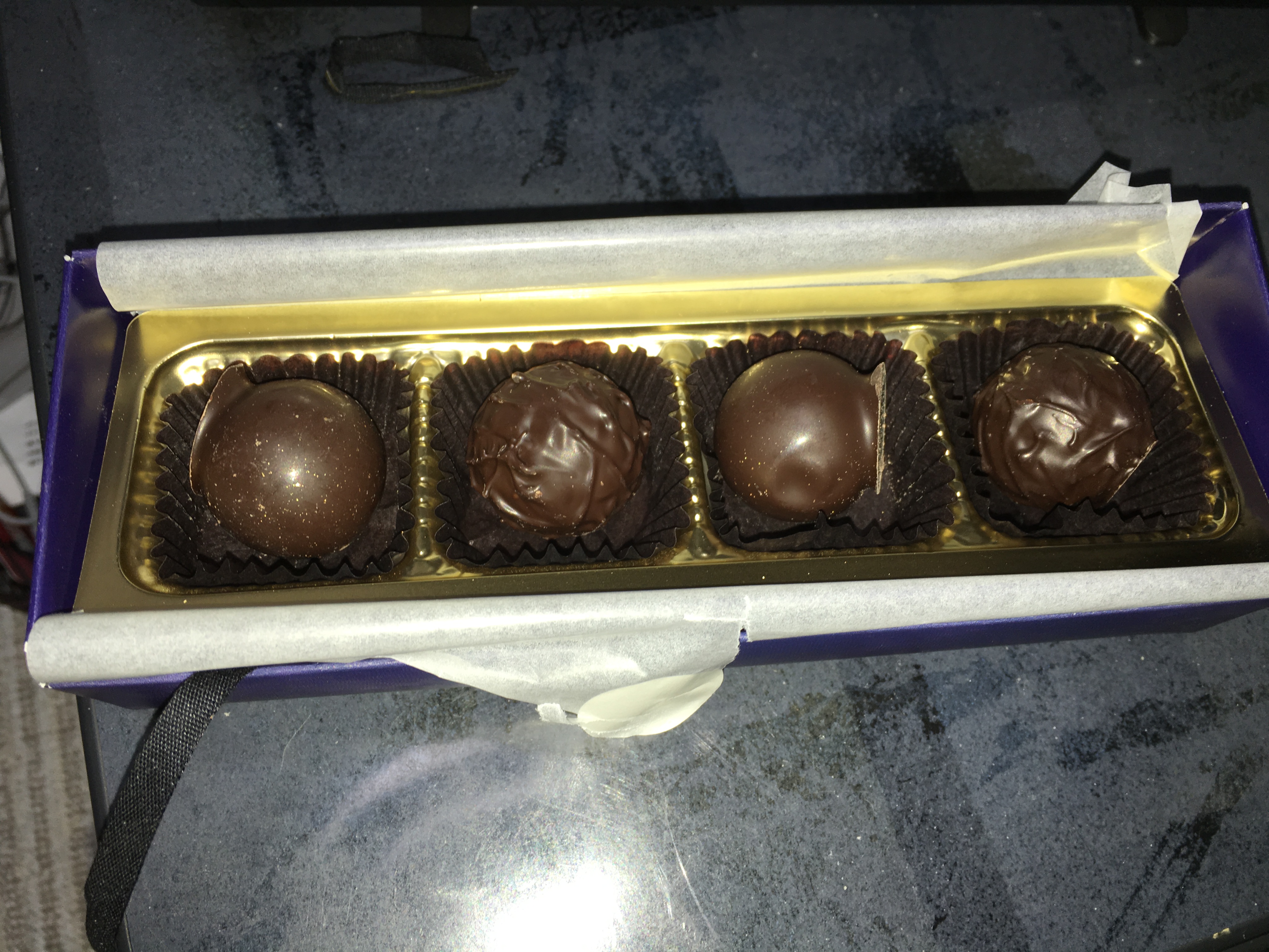 オシャレな箱からトリュフチョコが4つ!