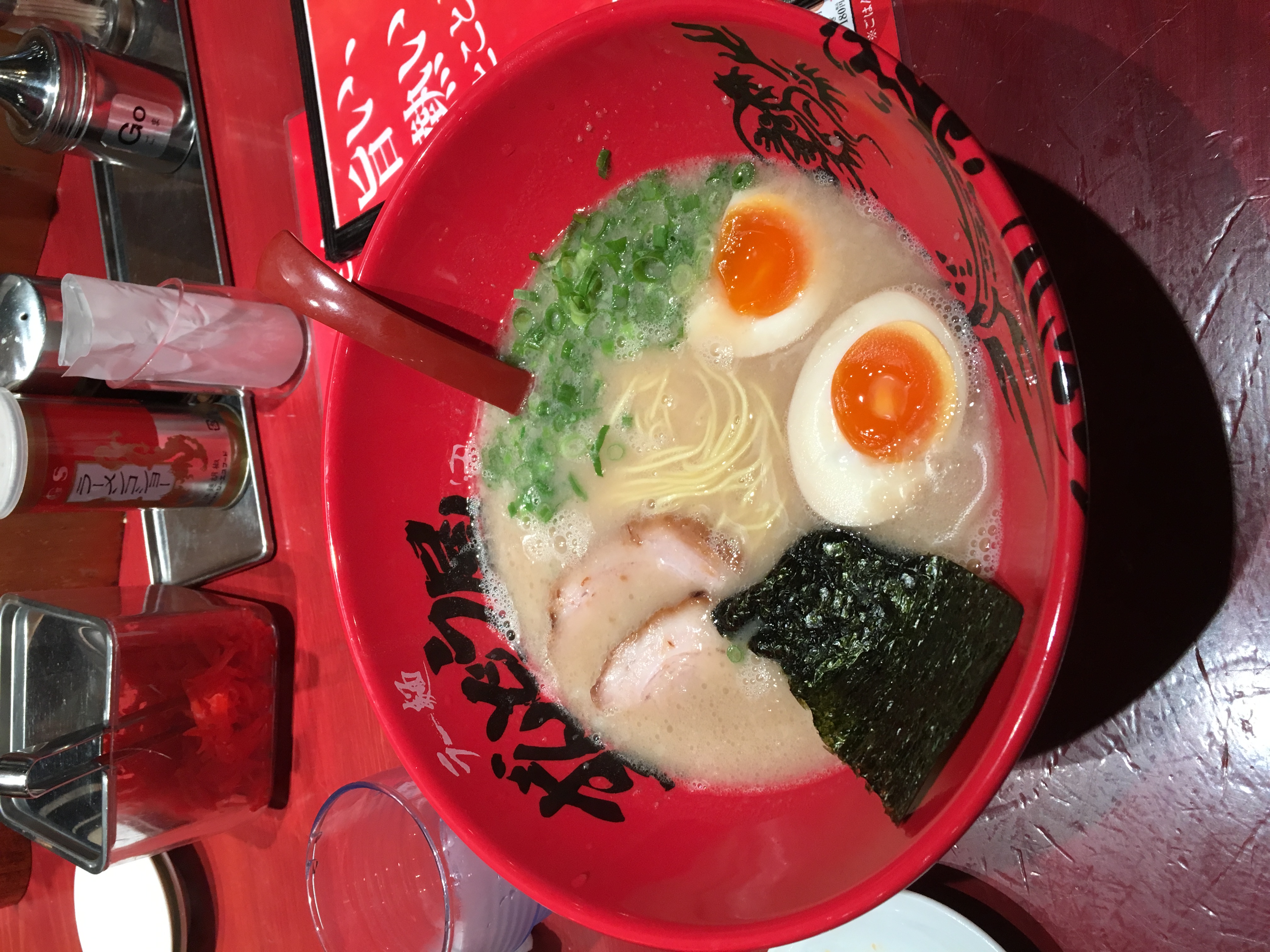 濃厚な豚骨系のラーメンで細麺にスープがとてもよく絡んで美味しかったです!