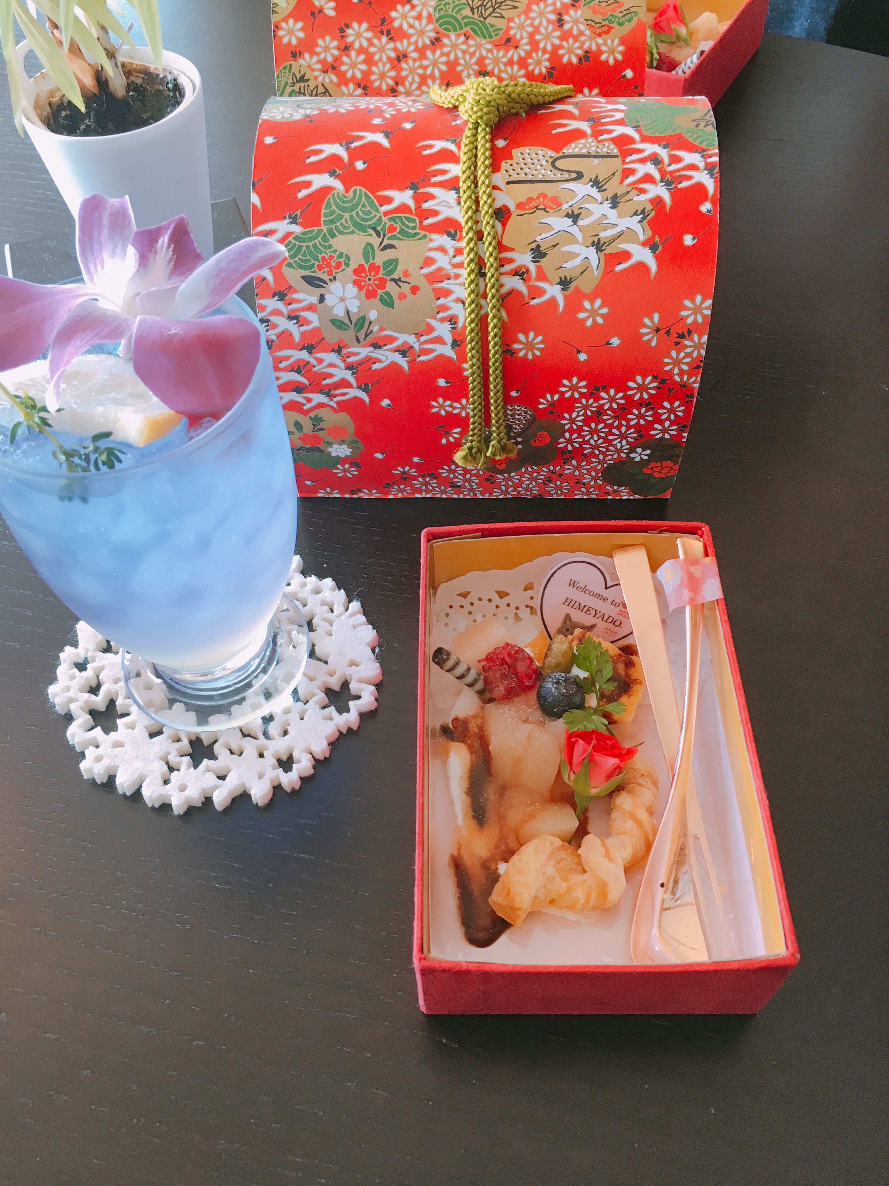 内装の可愛いお宿で、ついて早々ウェルカムスイーツを頂きました!