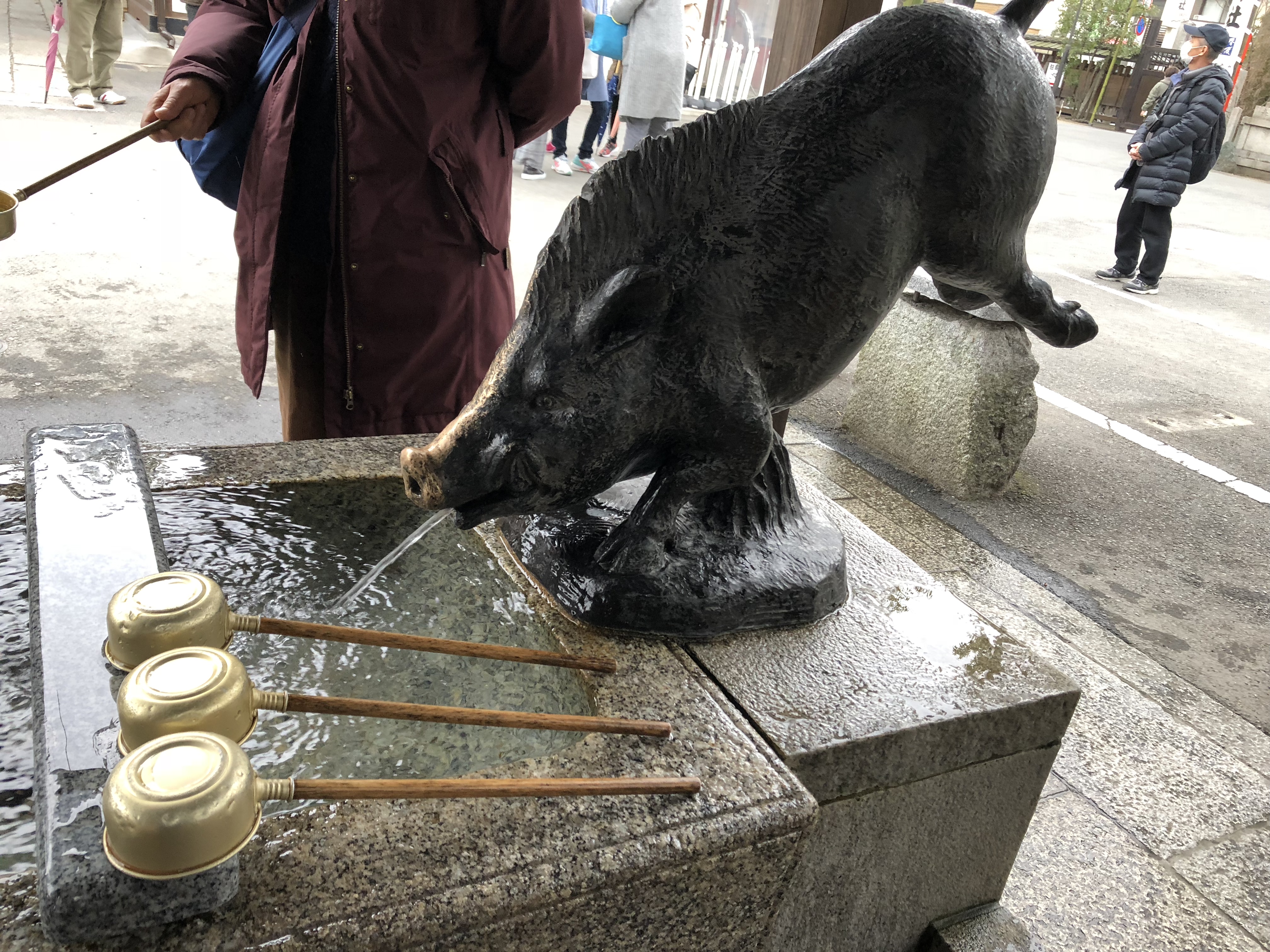 狛犬では無く狛猪がいたり、手水舎も猪だったりと至る所に猪が描かれていたり、飾ってありました!