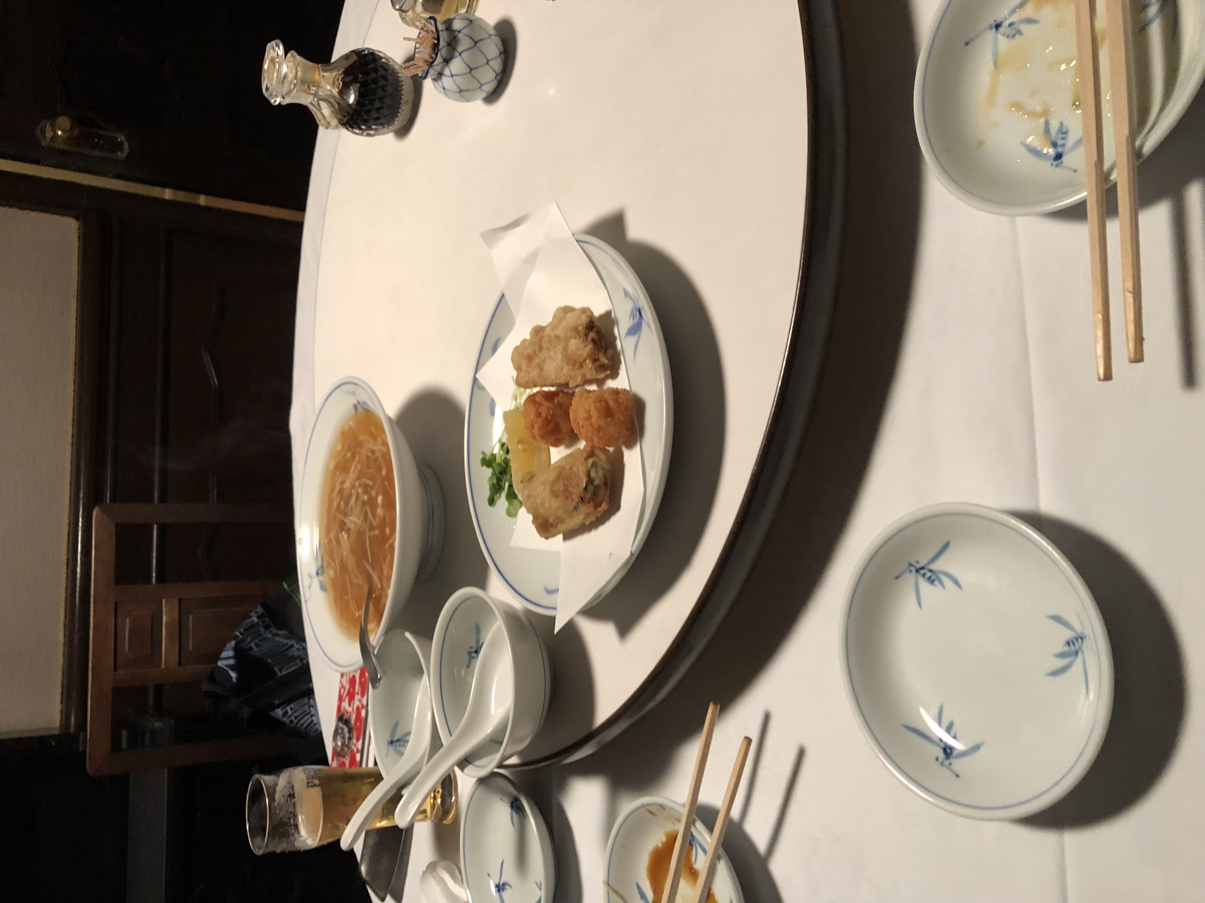 ・カニ入りフカヒレスープと揚げ物2種