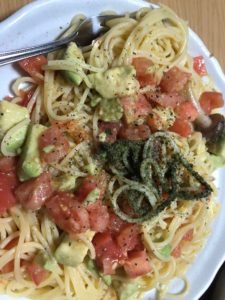 これはトマトとアボカドのパスタです。