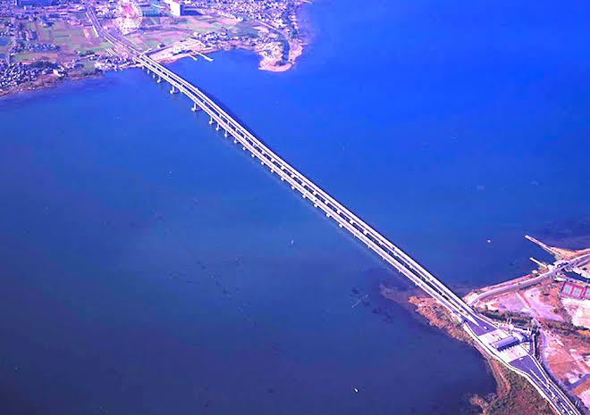 滋賀県にある琵琶湖大橋のようですね。