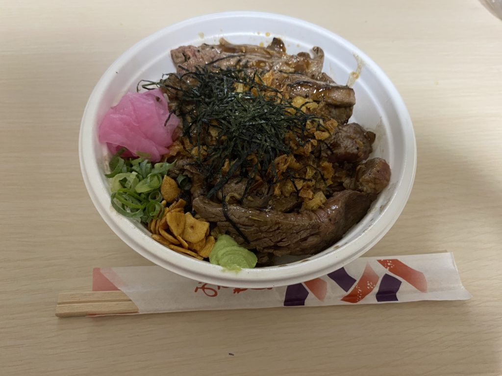 一つ目は数ヶ月前にも頼んだステーキカレーのお店のステーキ丼!