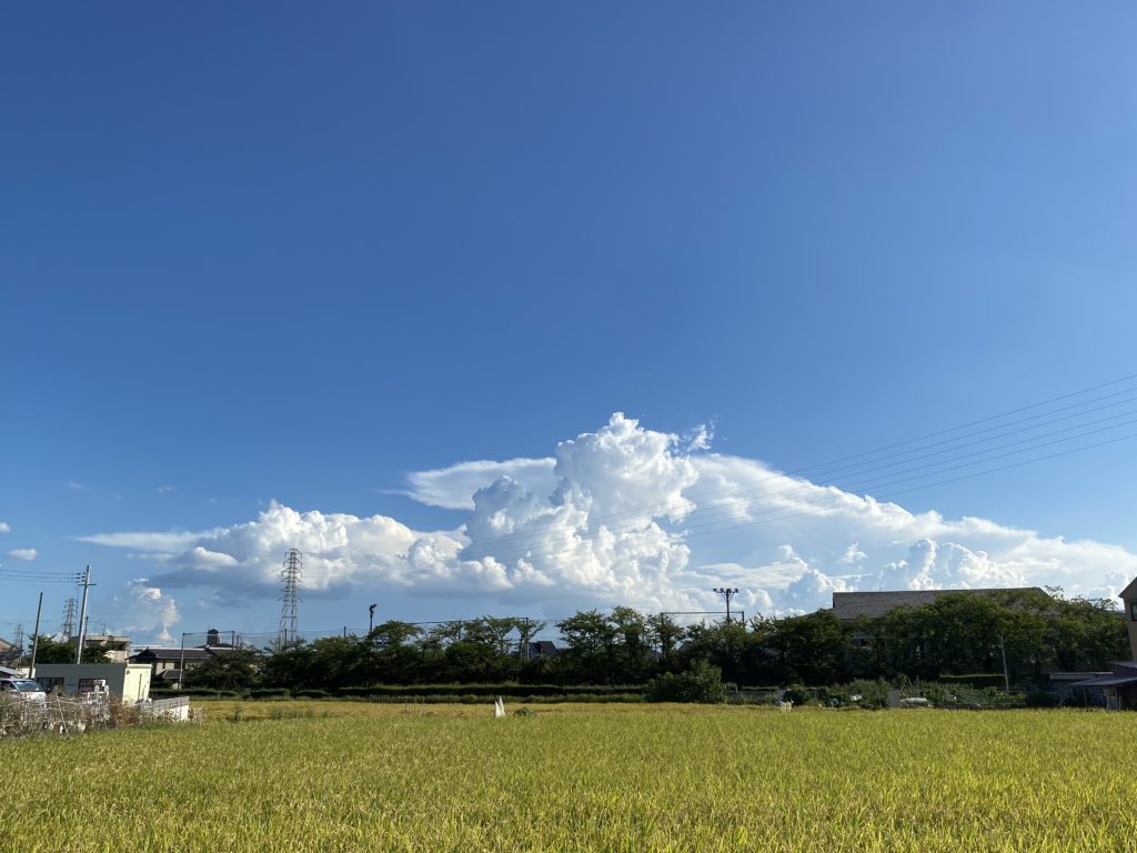 その時に空をみたらいい感じに青空に入道雲という景色になってたので帰り道に写真を撮ってました(