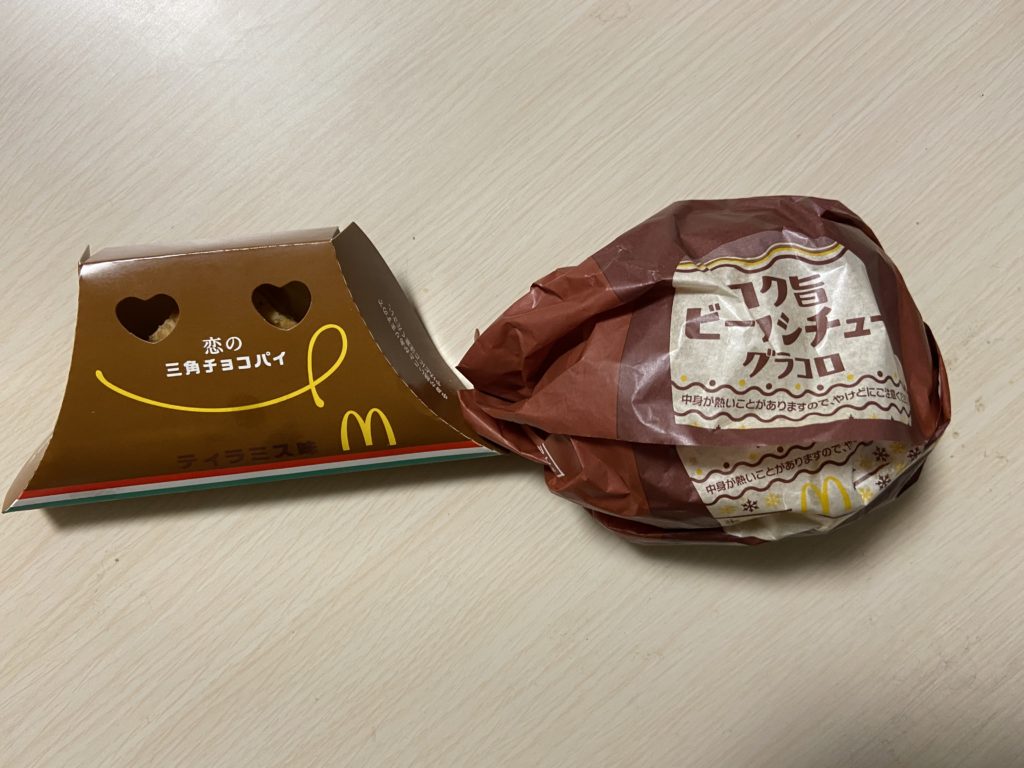 新しく出た三角チョコパイの新作も食べれたし、久々にマクドナルドのバーガーを食べれたので満足です!