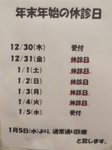 年末年始の休みのお知らせ