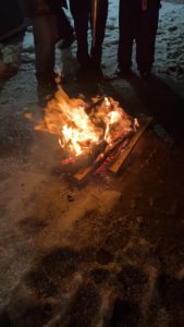 一通り終わったら寒かったので、火にあたりました。