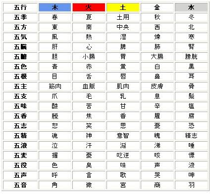 五行色体表というのもあります。