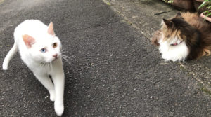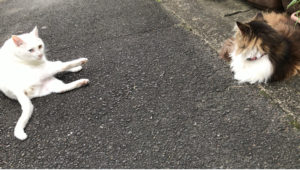 梅雨の中休み…なんて日は家の前で寛ぐ我が家の小夏さんと三四郎くん。