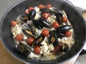 なんちゃってパエリアも、ちゃんと作って
