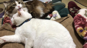 小夏さんのご機嫌が良い時には、念入りに三四郎くんにグルーミング をします。