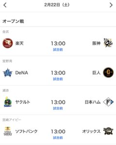 2月22日から3月の23日までオープン戦が、