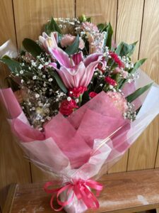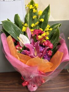割と派手な色を使っての花束💐